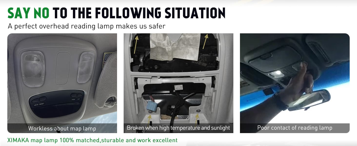 - [Customer's Approval] Choosing the XIMAKA overhead Console Dome reading lamp is a especially correct choice when you need a sturdy and brand-new one. And We are also willing to offer a sincere service attitude to make sure of your high quality shopping experience