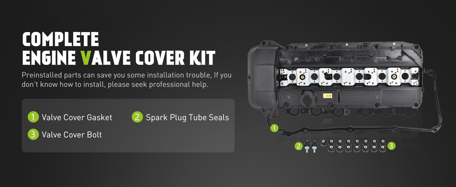 - [COMFORTABLE OPTION] Complete engine valve cover kit with gaskets and bolts. A new oil cap cap is not included, please reuse OEM oil cap to install. Pre-installed parts can save you some installation trouble. Be careful not to over-tighten or loosen the bolts as this may cause deformation of the valve cover. Tighten the bolts properly to ensure proper operation. (If you don't know how to install, please seek professional help)